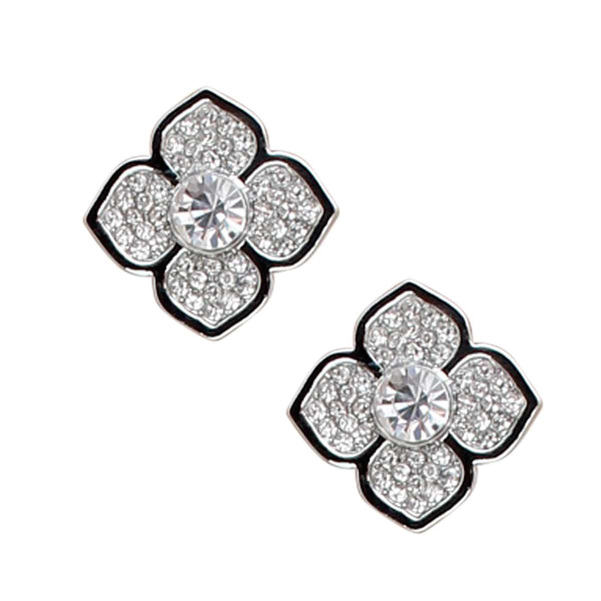 Silver Metal and Clear Rhinestone Luxury French Designer Inspired Flower Stud Earrings.